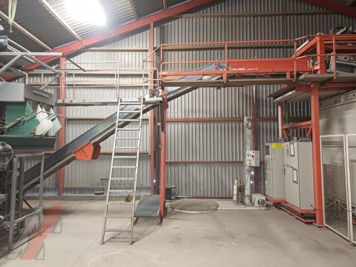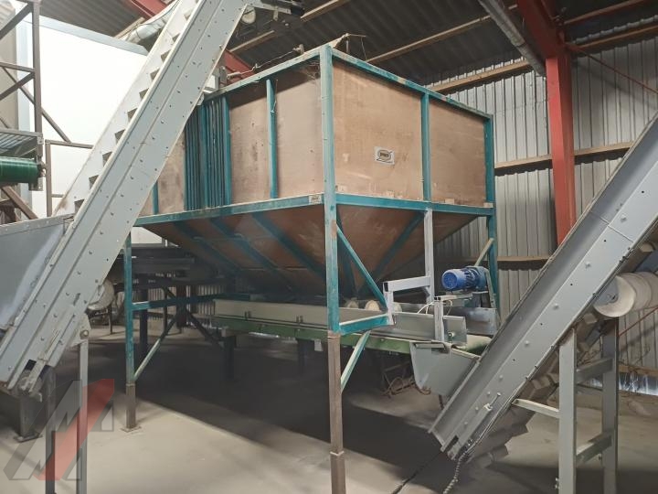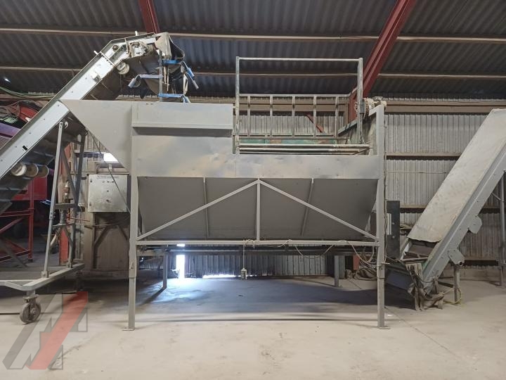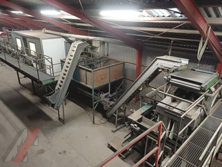 - Bijlsma Hercules 30.000 sorteerder - verdeelkast met banden- zwenkbare elevator - bufferbunker met kantelaar - opvoer elevator- afschuifband - dubbele leeskamer met overdruksysteem en vuilafvoerbanden - verzamelband achter leeskame - opvoer elevator- netto opzakbunker - opvoer elevator naar afweger - dubbele afweger met naleestafel - naaistraat met kaartautomaat - palletiseerder met draaicarrousel wordt voorzien van nieuwe software - palletwikkelaar